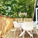 Vila Vila A- Frame Huisje Ardennen Durbuy nabízí hostům prodejní automat a restauraci, stejně jako sluneční terasu, patio a místo na piknik. Ubytování se nachází 5 minut jízdy od Adventure Valley Durbuy a 25 minut chůze od centra města Durbuy.